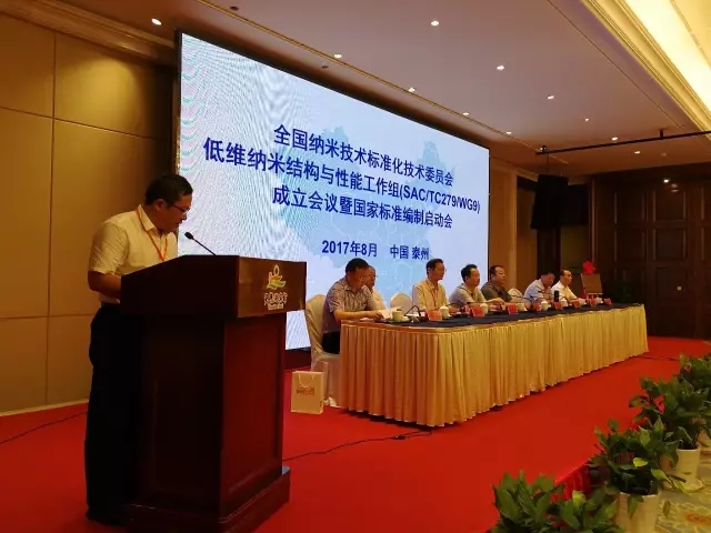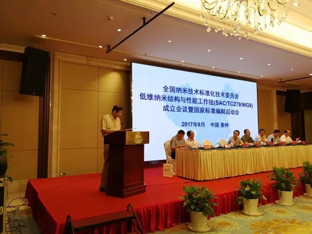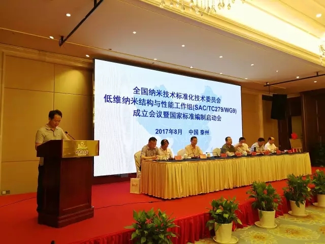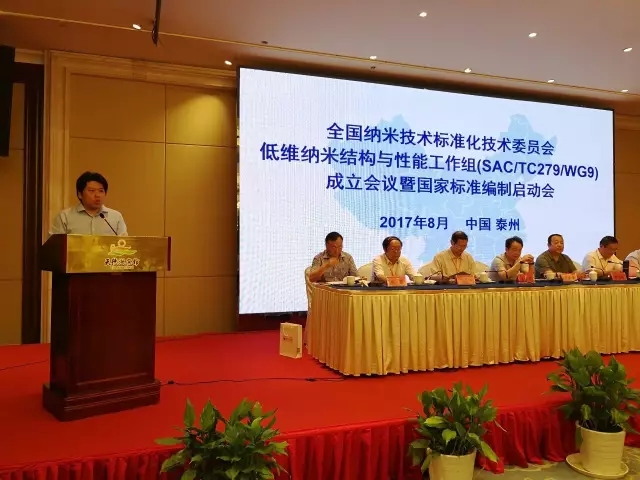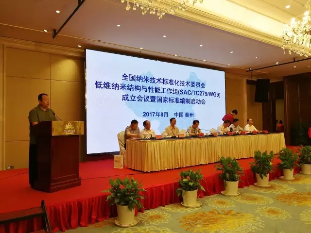 2017年8月21日,全國納米技術(shù)標準化技術(shù)委員會(huì )低維納米結構與性能工作組(SAC/TC279/WG9)成立會(huì )議暨國家標準編制啟動(dòng)會(huì )在泰州正式開(kāi)幕。全國納米技術(shù)標準化技術(shù)委員會(huì )低維納米結構與性能工作組(SAC/TC279/WG9)成立會(huì )議第一階段由泰州市質(zhì)量技術(shù)監督局顧維中局長(cháng)主持。